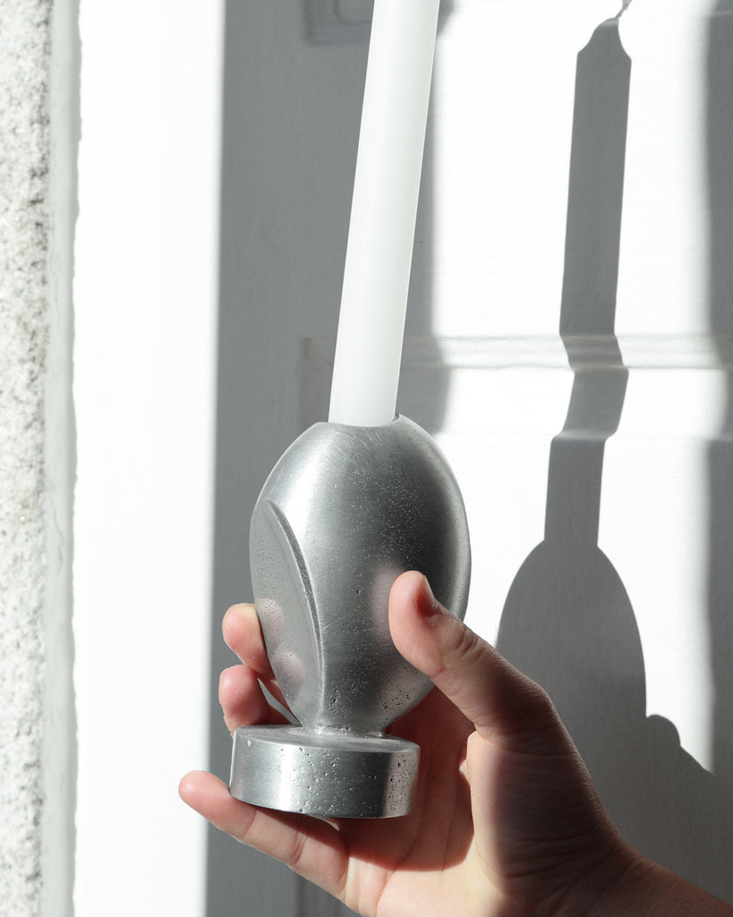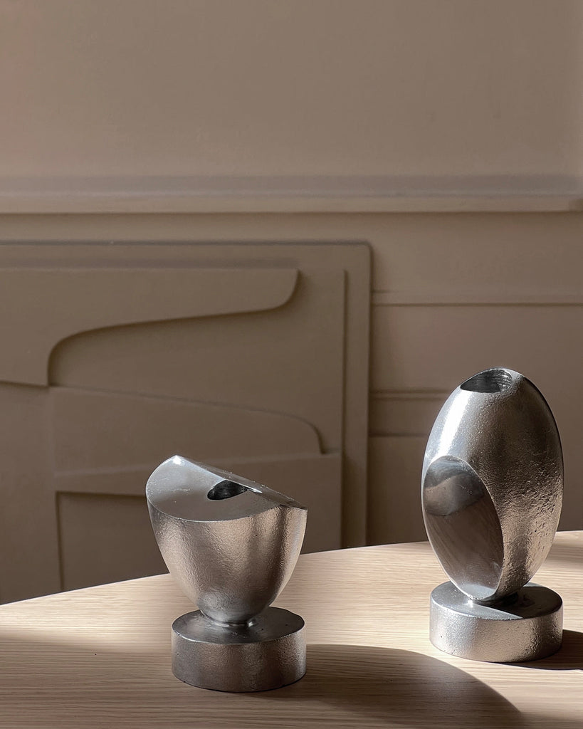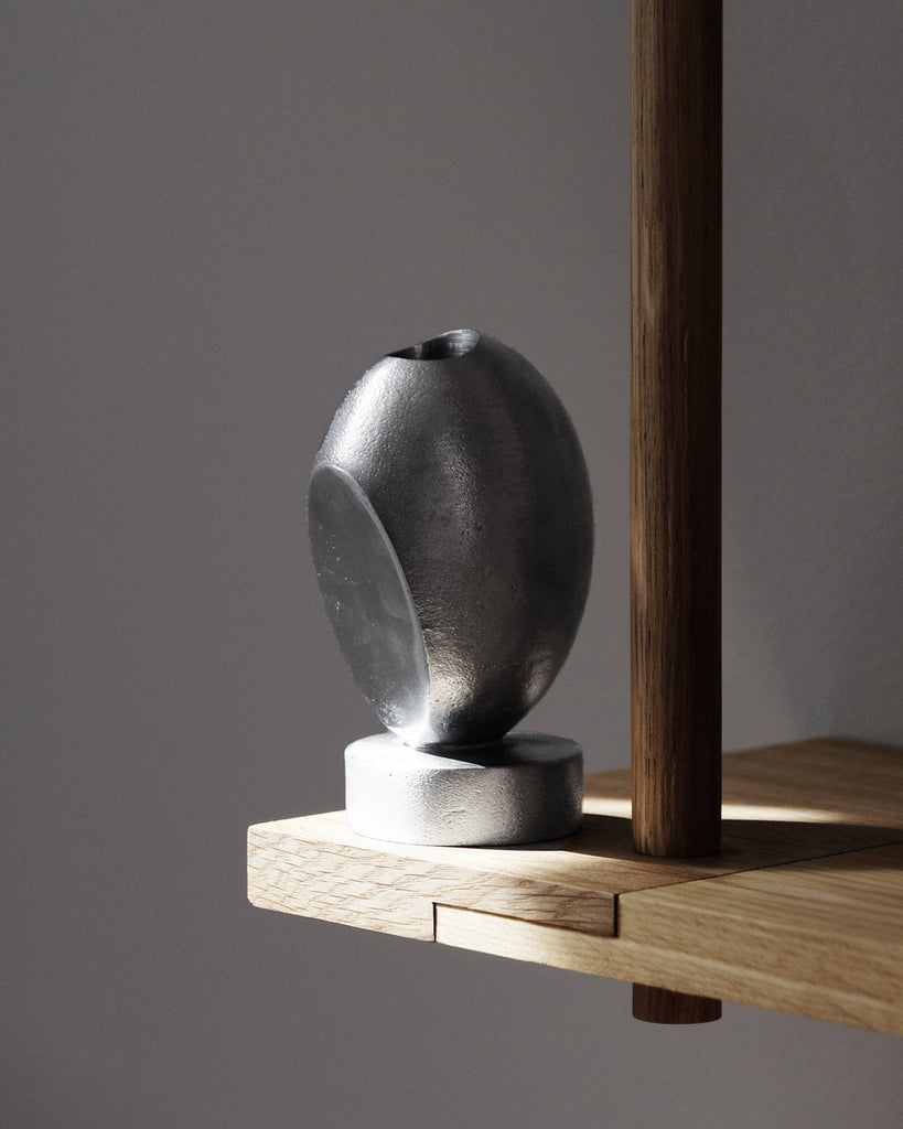 The Poise candle holder is designed to bring light, balance and grace. A subtle statement piece that seemingly allows the light to float, but always holding it solidly in place – a small sculpture in its own right. Poise is sand cast in aluminium with a raw finish and polished flat surfaces, emphasising the qualities of the material.