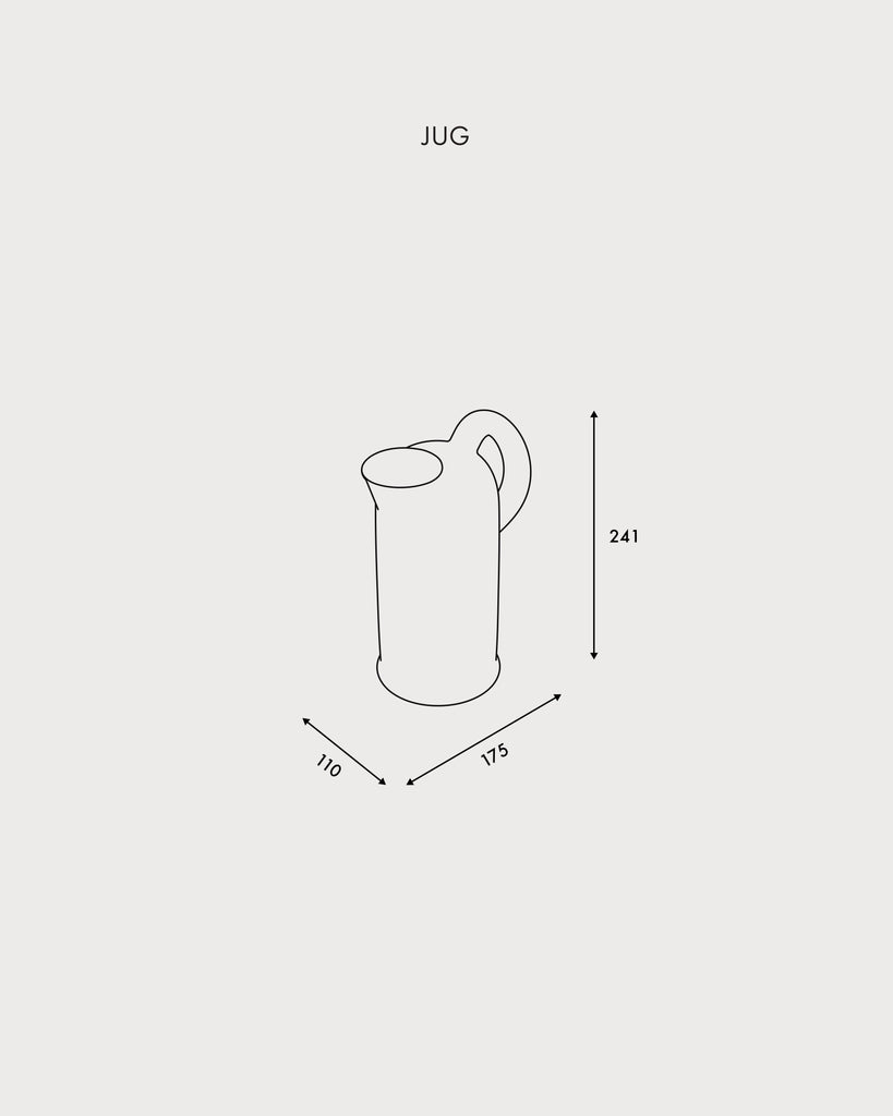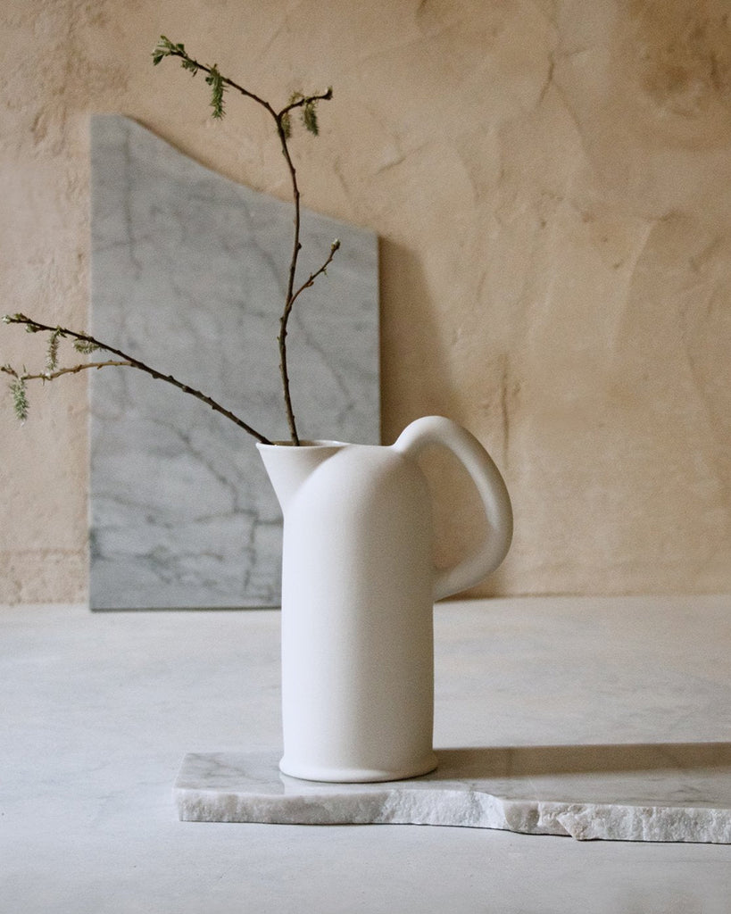 Jug is a water jug made of clay that reinterprets the historic typology with an upright profile and ergonomic handle. To encourage the user to consume tap water instead of from plastic bottles, Jug is a beautiful daily use object that never needs to be stored away. Its presence should remind and encourage us to consume local water, while keeping its contents cool with the thermal insulation property of porcelain.