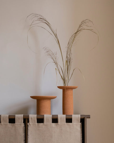 Gift an ikebana hobbyist a Salt Vase which comes with a kenzan or pin frog. For someone looking to decorate a wider space, a gift idea would be the Charred Vases which offer five different but related forms or the Coluna Vases which are versatile vessels for creating stunning displays of greenery.